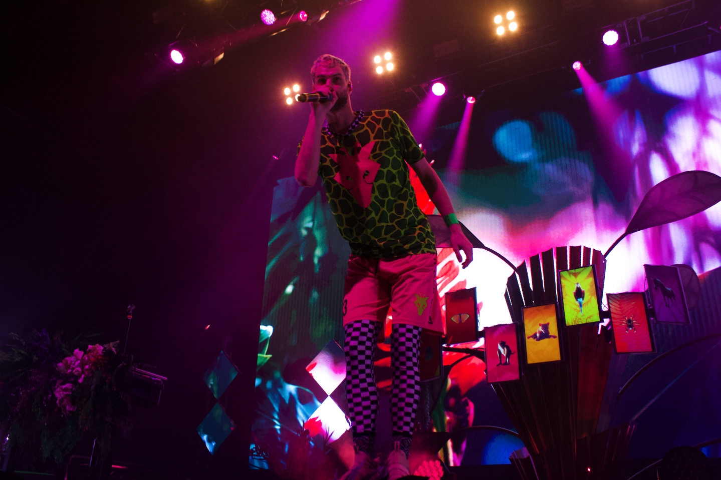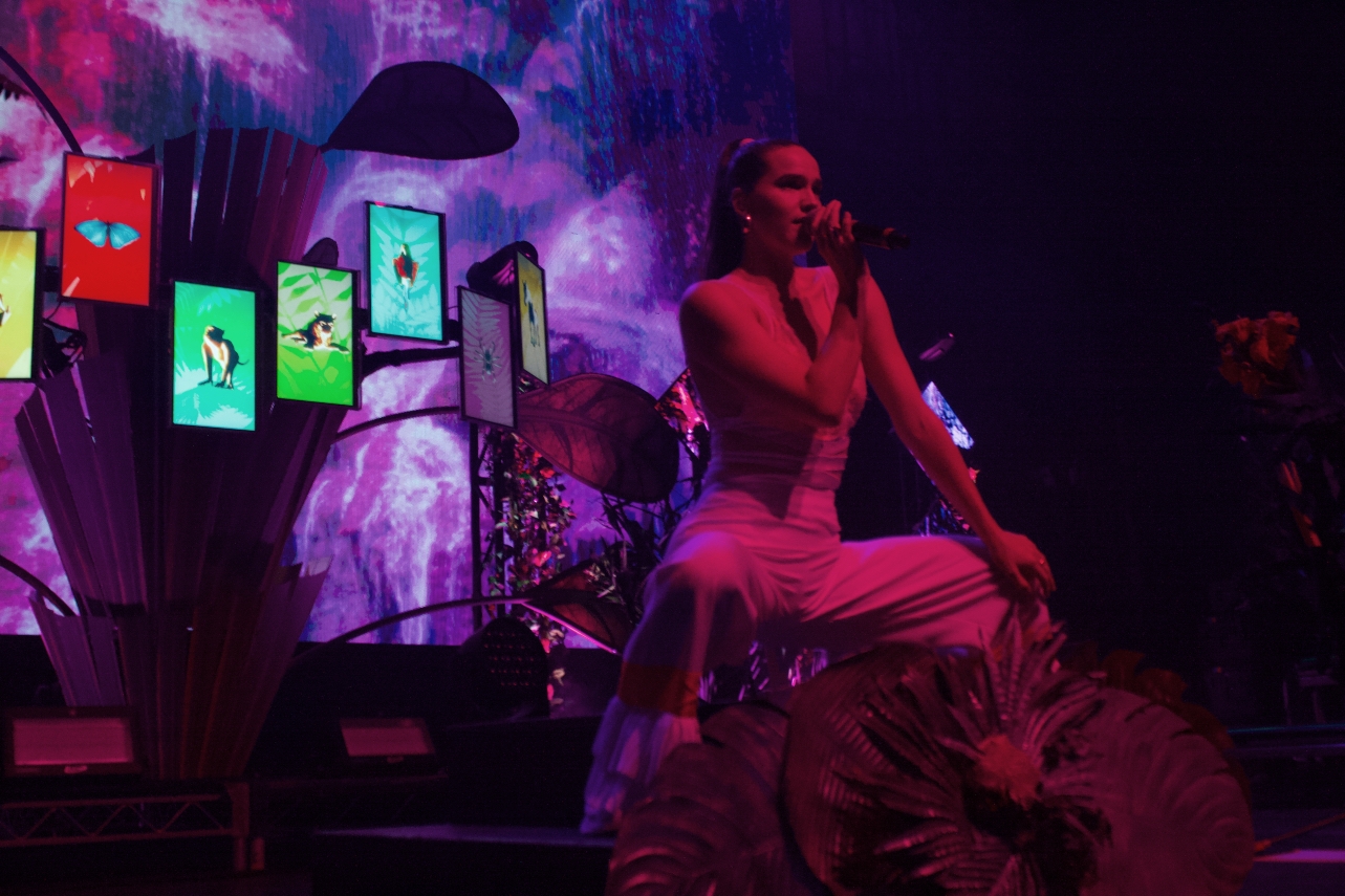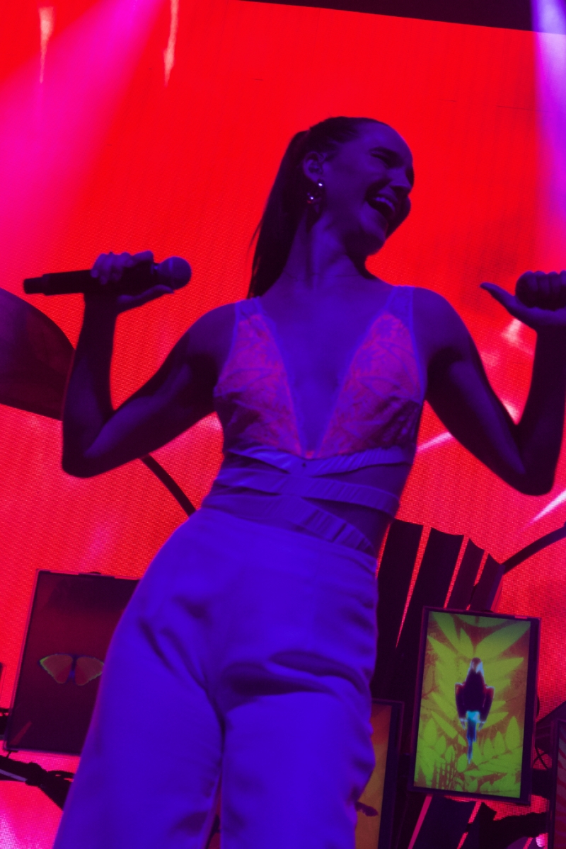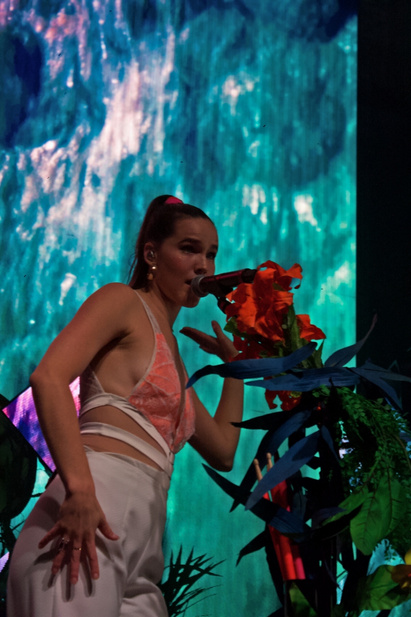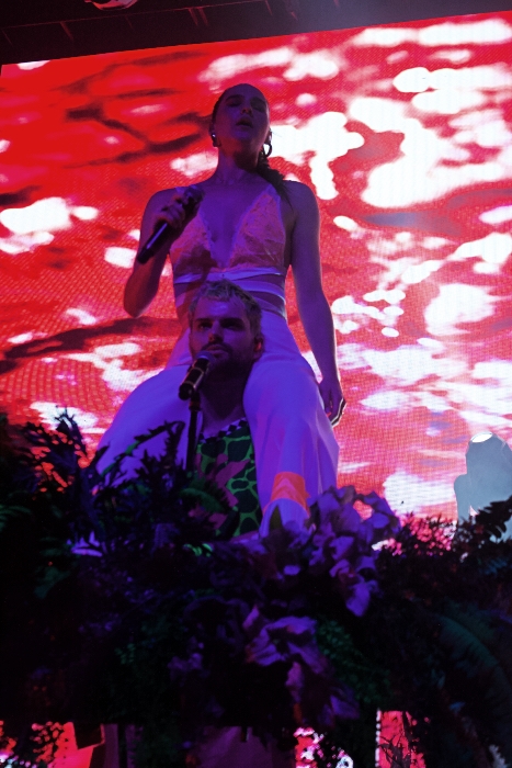 You can tell in their music, style, and even personalities that Sophie Hawley-Weld and Tucker Halpern are visionaries. Their jungle pop sound splashes with color in every beat, which is why the massive stage filled with animals, leaves, florals, and video of each felt like a Broadway set. You were entering their world, and they were as happy as the crowd to have company. The way they shook their booties and pranced around the stage felt like a celebration of bodies and the hearts that feel unconfined by them. Hence, why they are the show for people who want to dance under AMAZING visuals.